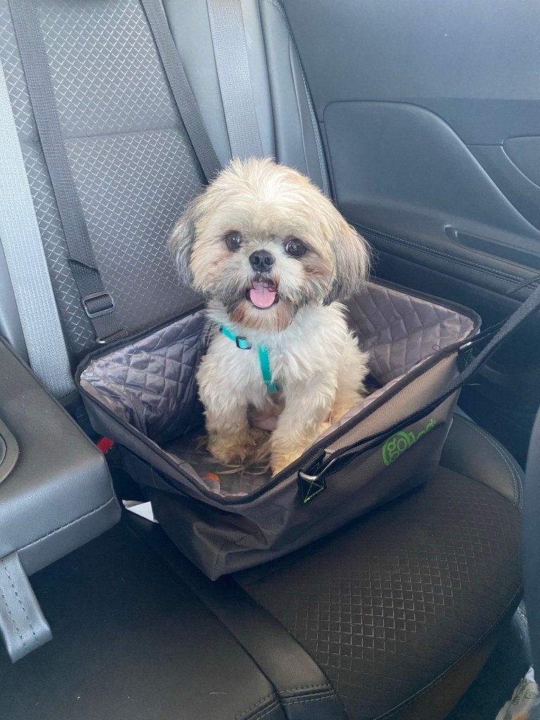 Meadow is a Small Standard Parti (black, silver, and gold) female and weighs 10 lbs. AKC registered.